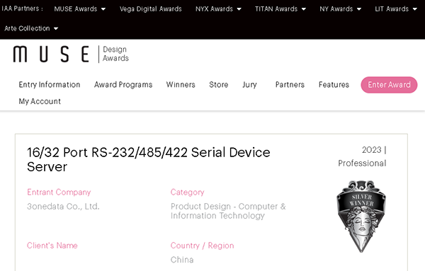 近日,2023年度美國(guó)繆斯設(shè)計(jì)獎(jiǎng)(Muse Design Award)獲獎(jiǎng)名單正式揭曉。三旺通信NP5100安全串行設(shè)備服務(wù)器榮獲產(chǎn)品設(shè)計(jì)類(lèi)銀獎(jiǎng)。
