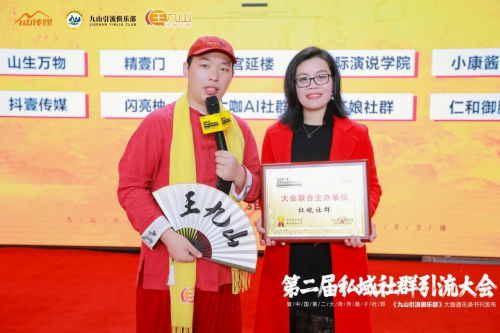 王九山作為本次大會(huì)的總導(dǎo)演和發(fā)起人,給大家分享了創(chuàng)辦《九山引俱樂(lè)部的》初心文化,據(jù)了解,王九山是暢銷(xiāo)書(shū)作家,擅長(zhǎng)全網(wǎng)引流裂變與網(wǎng)絡(luò)霸屏推廣,出版暢銷(xiāo)書(shū)《全網(wǎng)引流爆粉實(shí)戰(zhàn)手冊(cè)》《搜索霸屏全網(wǎng)絡(luò)營(yíng)銷(xiāo)之道》《IP打造》等書(shū)籍,過(guò)往14年的互聯(lián)網(wǎng)經(jīng)驗(yàn),服務(wù)了3000+知名品牌方、100+明星IP宣發(fā)、500多場(chǎng)跨界跨圈的行業(yè)大會(huì),積累了36個(gè)私域微信,是《萬(wàn)群匯聯(lián)盟》創(chuàng)始人,100萬(wàn)私域粉絲學(xué)員資源,在社群裂變和私域引流方面有獨(dú)到的見(jiàn)解,創(chuàng)造多個(gè)裂變神話至今無(wú)人打破的記錄,2023年發(fā)起《九山引流俱樂(lè)部》得到大家廣泛的認(rèn)可!他的初心就是幫助別人的同時(shí)體現(xiàn)自己的價(jià)值,以利他的心態(tài)促進(jìn)圈子與圈子的鏈接,做對(duì)社會(huì)有意義有價(jià)值的貢獻(xiàn)!