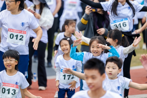 哈羅橫琴外方校長馬千里博士、廣東省政 府橫琴辦社會事務(wù)局分管領(lǐng)導(dǎo)馮宇紅女士、橫琴粵澳深度合作區(qū)民生事務(wù)局代表、宋創(chuàng)匯 (北京)品牌文化發(fā)展有限公司總經(jīng)理楊自謙先生、橫琴粵澳深度合作區(qū)慈善促進(jìn)會會長 —— 橫琴人壽保險有限公司副總裁張林先生與現(xiàn)場嘉賓為賽事開跑鳴槍