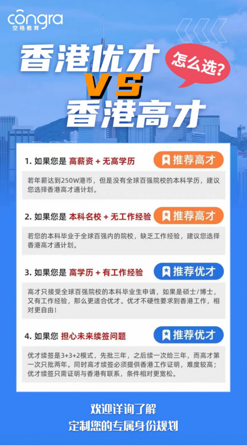 今天空格教育跟大家來探討一下這個話題,看看香港優(yōu)才計劃和高才通哪個更適合你?