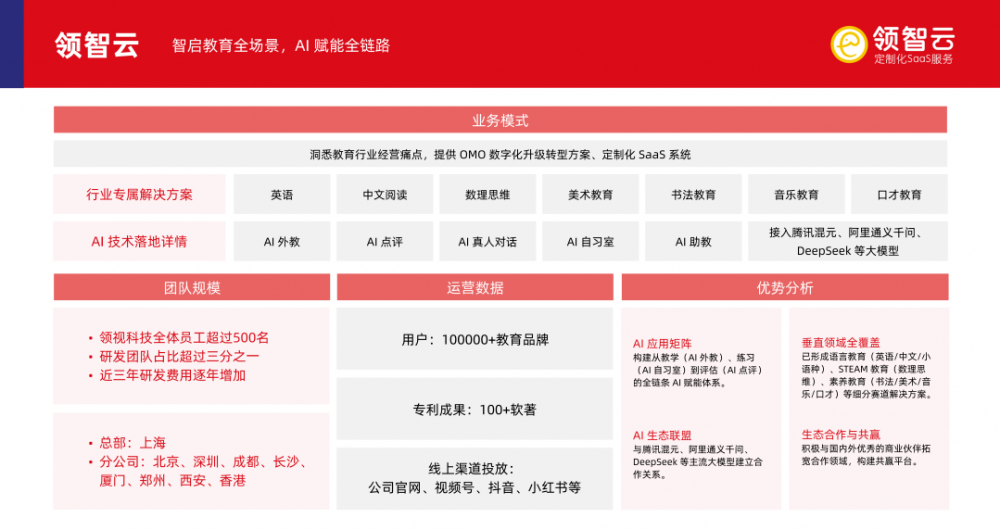 領智云的獲獎,源于將前沿AI能力系統(tǒng)性融入教育核心場景,破解了機構在教學質(zhì)量、運營效率與個性化服務方面的長期難題: