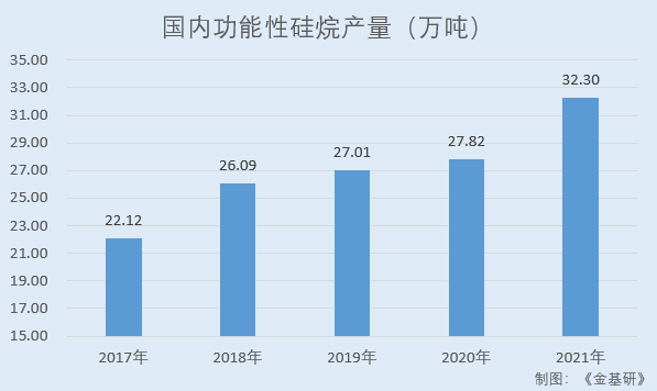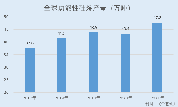 近年來(lái),隨著下游行業(yè)的產(chǎn)業(yè)升級(jí),終端客戶(hù)對(duì)產(chǎn)品品質(zhì)要求的不斷提高,功能性硅烷行業(yè)的整體需求呈穩(wěn)定上升趨勢(shì),全球功能性硅烷行業(yè)產(chǎn)量持續(xù)增長(zhǎng)。