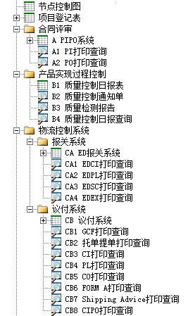 2、 流程數(shù)據(jù):項(xiàng)目管理,合同評(píng)審管理,產(chǎn)品實(shí)現(xiàn)過程控制,倉儲(chǔ)及物流管理,財(cái)務(wù)管理,以及相關(guān)的統(tǒng)計(jì)與報(bào)表管理。
