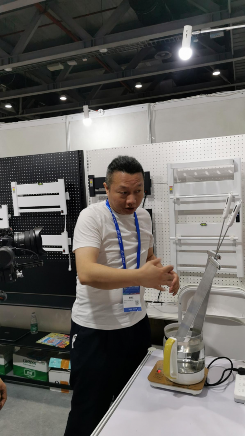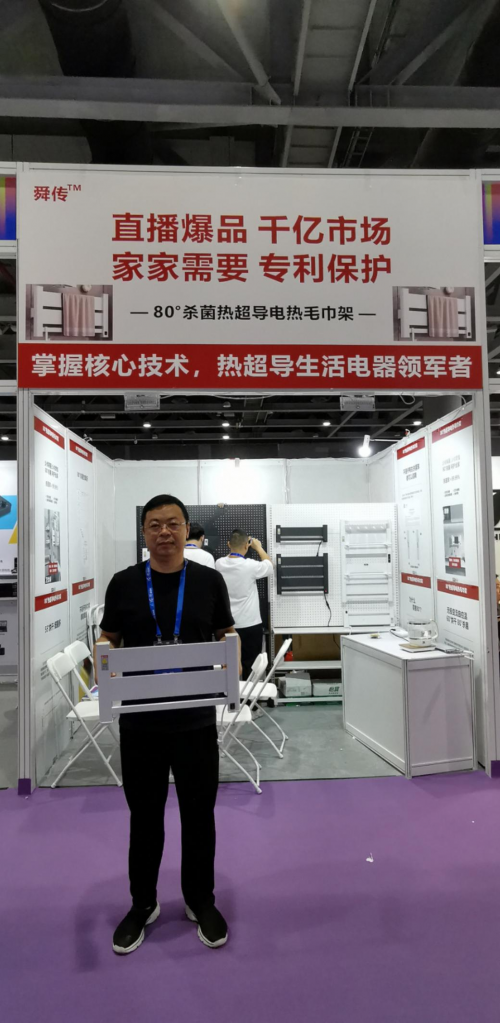 在銷售區(qū)顯眼的位置上,注意到了正在演示產(chǎn)品的舜傳科技。據(jù)了解,舜傳科技(深圳)有限公司是一家研發(fā)新型健康小家電為主的年輕企業(yè),其自主研發(fā)的黑科技產(chǎn)品”電熱毛巾架“正在走俏,在短短的一年時間里,成為行業(yè)的一匹黑馬。在此次博覽會上,舜傳科技展露頭角,成為直播電商、帶貨達人的重要選品之一。