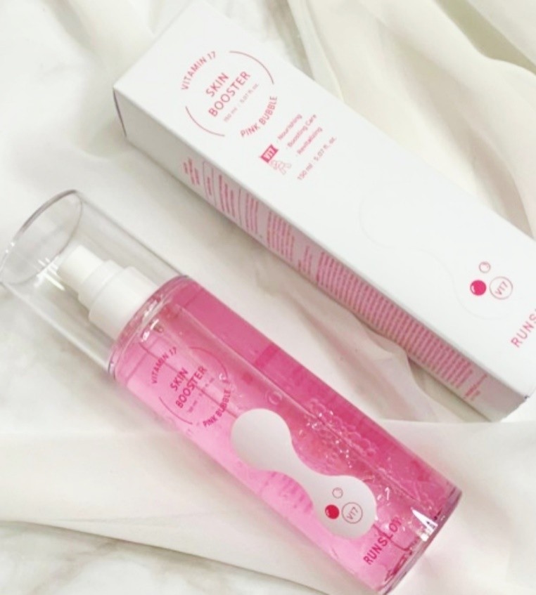 RUNSLOW維他命17粉色泡泡爽膚噴霧一經(jīng)上市便受到了不少韓國(guó)年輕人的喜愛(ài),韓國(guó)演員金希廷更是在美妝節(jié)目中稱贊其優(yōu)越的補(bǔ)水與提亮效果。