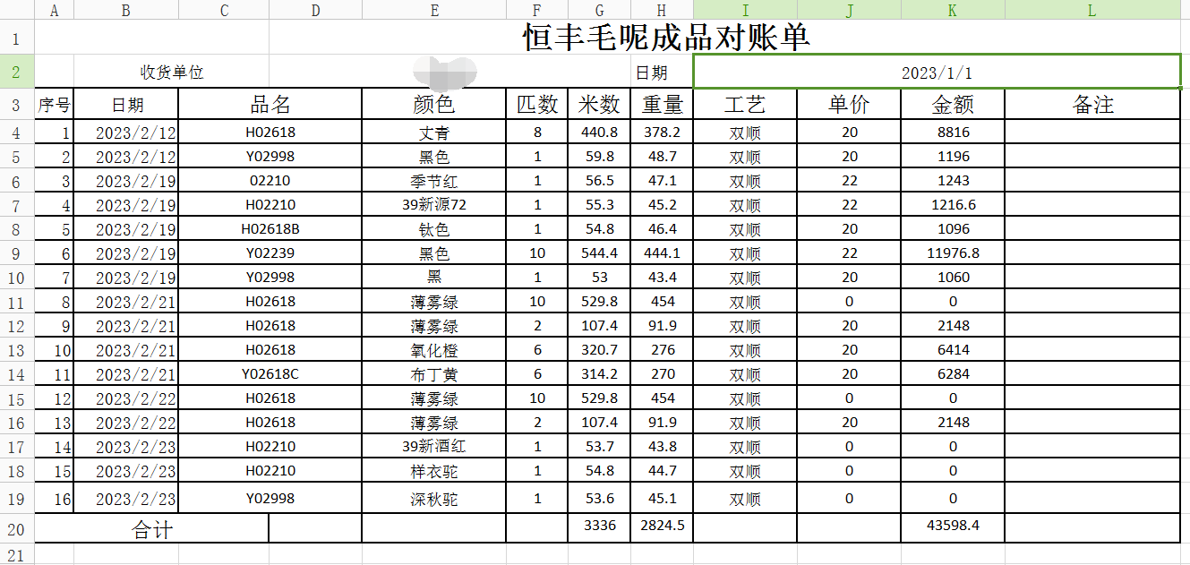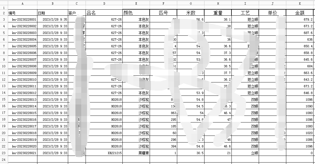成品出庫單:主表收貨單位,明細(xì)表品名、顏色、批號、工藝等,從工藝流程客戶選擇,不需要人工重復(fù)錄入基礎(chǔ)數(shù)據(jù)。