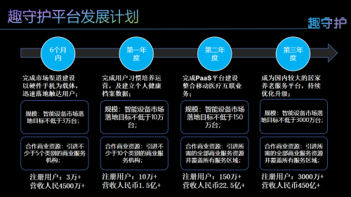 在趣守護(hù)科技的的會(huì)議室,工作人員在大屏上演示了《趣守護(hù)AI居家養(yǎng)老項(xiàng)目計(jì)劃書》以及《趣守護(hù)社區(qū)服務(wù)區(qū)拓規(guī)劃書》,姜軍透露,趣守護(hù)預(yù)計(jì)在2026年達(dá)到智能設(shè)備市場落地不低于3000萬臺(tái)的規(guī)模,營收目標(biāo)450億元人民幣,近期已陸續(xù)受到相關(guān)產(chǎn)業(yè)基金和創(chuàng)投機(jī)構(gòu)的項(xiàng)目問詢和來訪調(diào)研,正在針對下一輪融資階段開展洽談,也希望借助媒體的報(bào)道吸引更多有識(shí)之士和產(chǎn)業(yè)同仁的關(guān)注與合作。除了產(chǎn)品平臺(tái)介紹與融資發(fā)展規(guī)劃之外,我們了解到趣守護(hù)商務(wù)團(tuán)隊(duì)正在“趣守護(hù)守護(hù)天使行動(dòng)計(jì)劃”、“AI居家養(yǎng)老主題沙龍”、“趣守護(hù)AI養(yǎng)老社區(qū)服務(wù)中心”等方面同步予以布局和發(fā)展。從而在重點(diǎn)城市團(tuán)隊(duì)組織架構(gòu)、養(yǎng)老產(chǎn)業(yè)機(jī)構(gòu)商務(wù)交流、線下社區(qū)客戶服務(wù)零延時(shí)等多個(gè)層面有效的發(fā)揮與深圳總部的協(xié)同作用。