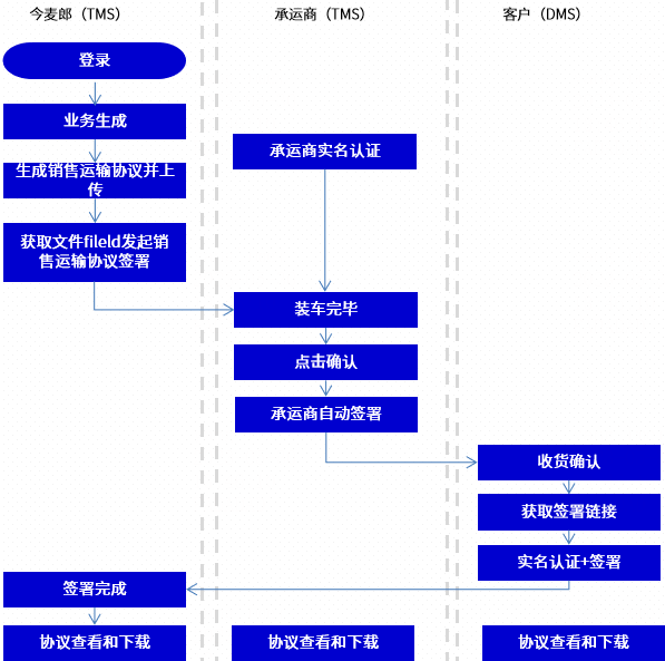 而今麥郎在企業(yè)的運輸管理系統(tǒng)中集成了法大大后,承運商便可以在系統(tǒng)中提前設(shè)置自動簽署,司機(jī)裝車完畢后點擊確認(rèn)即可發(fā)車。同時,司機(jī)也無需再隨身攜帶紙質(zhì)文件,到達(dá)目的地后直接與經(jīng)銷商/倉庫在線確認(rèn),真正有效地避免了因文件遺失引發(fā)的各類問題。