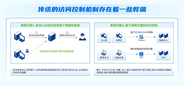 在整體網(wǎng)絡(luò)架構(gòu)中,遠(yuǎn)程辦公只是一個(gè)相對(duì)獨(dú)立的場景,用戶的業(yè)務(wù)訪問方式?jīng)]有發(fā)生質(zhì)的改變,依舊是先連接、后認(rèn)證。一旦攻擊者突破邊界,整個(gè)內(nèi)網(wǎng)將完全暴露。無論是攻防演練所暴露出的問題,還是真實(shí)世界中發(fā)生的網(wǎng)絡(luò)安全事件,都在不斷警示著我們:大部分安全事件的源頭都來自于內(nèi)部。