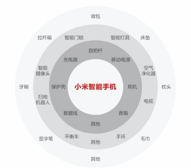 小米最開(kāi)始從手機(jī)切入,主打性?xún)r(jià)比,當(dāng)獲取足夠多的“米粉”后,以手機(jī)作為終端流量入口,連接其他所有的智能設(shè)備。在生態(tài)布局下,小米涉及了充電寶、耳機(jī)、手環(huán)、凈水機(jī)、空調(diào)等一系列產(chǎn)品,形成一個(gè)龐大的生態(tài)。