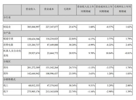 從產(chǎn)品線(xiàn)來(lái)看,格力、美的的產(chǎn)品線(xiàn)類(lèi)型相差并不大,區(qū)別在于各產(chǎn)品線(xiàn)的營(yíng)收規(guī)模。格力的收人基本全靠空調(diào),一枝獨(dú)大。一旦主業(yè)下滑,沒(méi)有新的增長(zhǎng)點(diǎn),整體業(yè)績(jī)下降非常明顯。