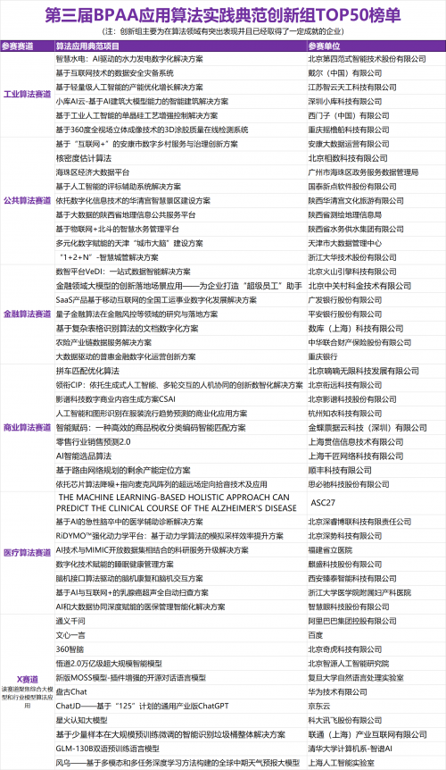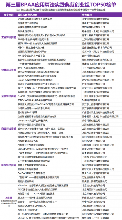 本屆BPAA大賽中,各算法項目團(tuán)隊除了在原有的公共算法、金融算法、醫(yī)療算法、工業(yè)算法、商業(yè)算法五大賽道開展角逐,更特設(shè)聚焦大模型和行業(yè)模型算法應(yīng)用的X賽道。同時,本屆大賽在前兩屆基礎(chǔ)上設(shè)置了創(chuàng)新、創(chuàng)業(yè)兩個參賽組別,為更多算法項目和團(tuán)隊提供展現(xiàn)自我和落地機(jī)會。