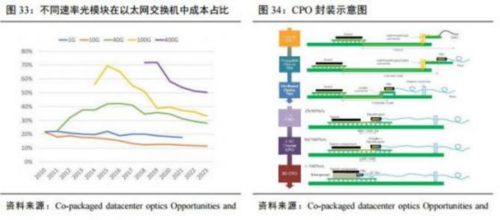 光模塊速率提高與低功耗需求日益強烈 ,硅光 、CPO 等技術趨勢有望成為長期解決方案 。硅光芯片采用 “光互聯(lián)”,疊加 CPO 技術 ,將光引擎與交換芯片共同封裝 ,在速率提高的同時大大縮減功耗;此外 ,LPO,相干技術及薄膜鈮酸鋰等技術亦成為光模塊優(yōu)化主要新趨勢 ,光模塊科技屬性增強 ,研發(fā)壁壘與客戶認證壁壘增高 ,長期趨勢進一步向好。