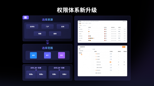 在權(quán)限方面。在即將上線的權(quán)限體系中,管理員可批量授權(quán),包括設(shè)置千人千面的數(shù)據(jù)權(quán)限。對于不在組織架構(gòu)的用戶,通過“外部用戶”功能,也將靈活管理的需求,簡化上下游企業(yè)協(xié)作的管理問題。