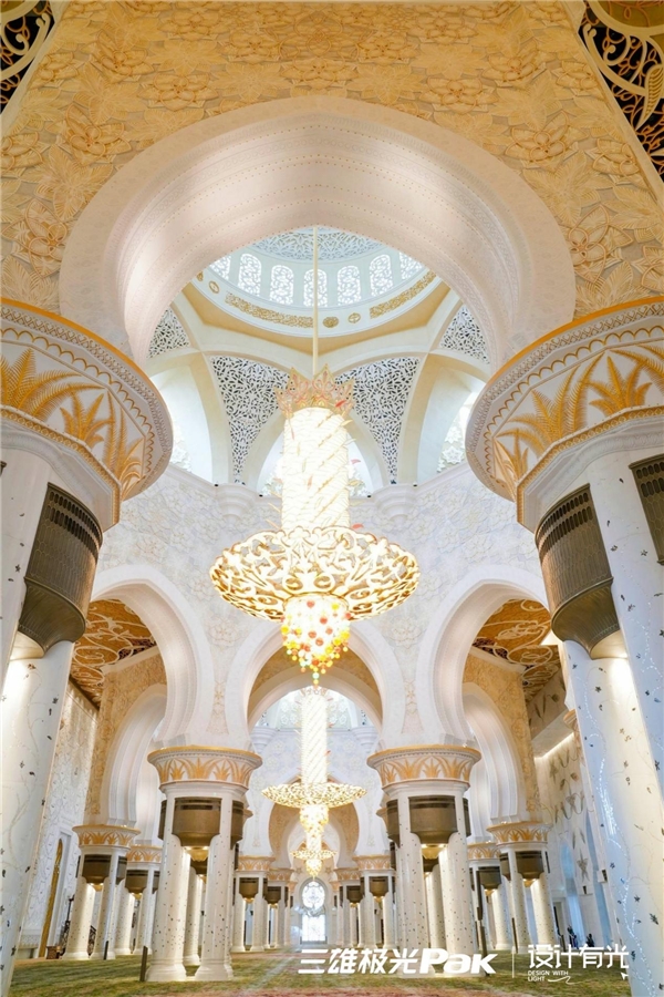 三雄極光照明學院“設計有光·亞洲設計師迪拜對話”游學團來到阿聯(lián)酋最 大的清真寺——謝赫扎伊德清真寺(sheikhzayed Grand Mosque),探秘穆斯林世界。由希臘漢白玉包裹形成的建筑群,莊嚴、肅穆且典雅。繁復精美的細節(jié)裝飾隨處可見,工藝精湛,極盡奢華,給予每一位到訪者美學震撼。