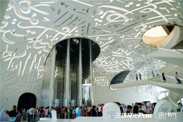 未來博物館由肖恩·基拉設計,用創(chuàng)新而獨特的建筑語言再次刷新了當代建筑的“奇跡”,是世界上最復雜的建筑之一。整體呈立體環(huán)形結(jié)構(gòu),外立面由1024塊機器人打印的阿拉伯書法版塊拼接而成,創(chuàng)造出獨一無二具有阿拉伯文化的美學效果。內(nèi)部共分為7層,涵蓋5個章節(jié),展現(xiàn)對未來的探索。從外到內(nèi),流動的點、線、面結(jié)合奇特的造型,賦予建筑神秘、科幻的視覺感受。