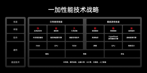 一加 Ace 2 Pro 不僅是天工散熱系統(tǒng)的首發(fā)機型,也是一加性能技術(shù)戰(zhàn)略下的首款產(chǎn)品。一加借助對用戶“日常使用”、“重度游戲”兩大場景性能需求的深度洞察,整合“內(nèi)存基因重組”、“微架構(gòu)超算引擎”、“煥新存儲技術(shù)”、“靈犀觸控”、“HyperBoost 游戲穩(wěn)幀引擎”和“超幀超畫引擎”六大技術(shù),形成“流暢鐵三角”和“游戲鐵三角”;并以此為核心,進一步整合硬件以及軟件領(lǐng)域的各項子技術(shù),針對用戶日常使用和重度游戲兩大場景,打造快、省、久、順、穩(wěn)、清的極致體驗。
