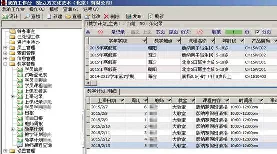 愛立方藝術(shù)中心負(fù)責(zé)人說,勤哲Excel軟件的功能是一個逐步設(shè)計的過程,這期間可以根據(jù)自己的時間來安排進(jìn)度,隨時做、隨時用,做完一張立刻使用一張。目前已經(jīng)實現(xiàn)了:學(xué)員信息與交費管理、教學(xué)計劃與課程管理、查詢統(tǒng)計、員工的考勤記錄等功能。具體內(nèi)容可以參考下圖: