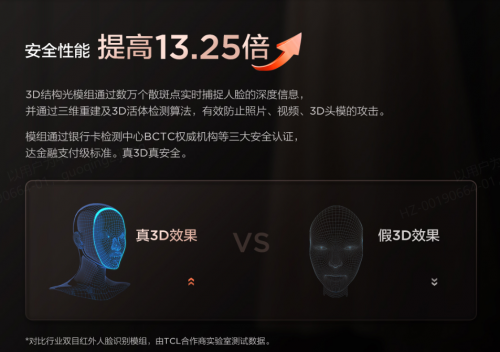 真3D光結(jié)構(gòu)人臉識(shí)別,將刷臉安全性提升13.25倍
