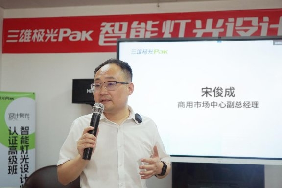 三雄極光商用市場(chǎng)中心副總經(jīng)理宋俊成為此次賦能課程發(fā)表致辭,對(duì)經(jīng)銷商照明設(shè)計(jì)師們的到來(lái)表示熱烈歡迎。并表示機(jī)遇與挑戰(zhàn)同在,認(rèn)為在日趨內(nèi)卷的現(xiàn)實(shí)環(huán)境下,把握市場(chǎng)趨勢(shì),向智能化方向轉(zhuǎn)型,為消費(fèi)者提供更專業(yè)的智能照明解決方案,才是真正有效的破局之舉。