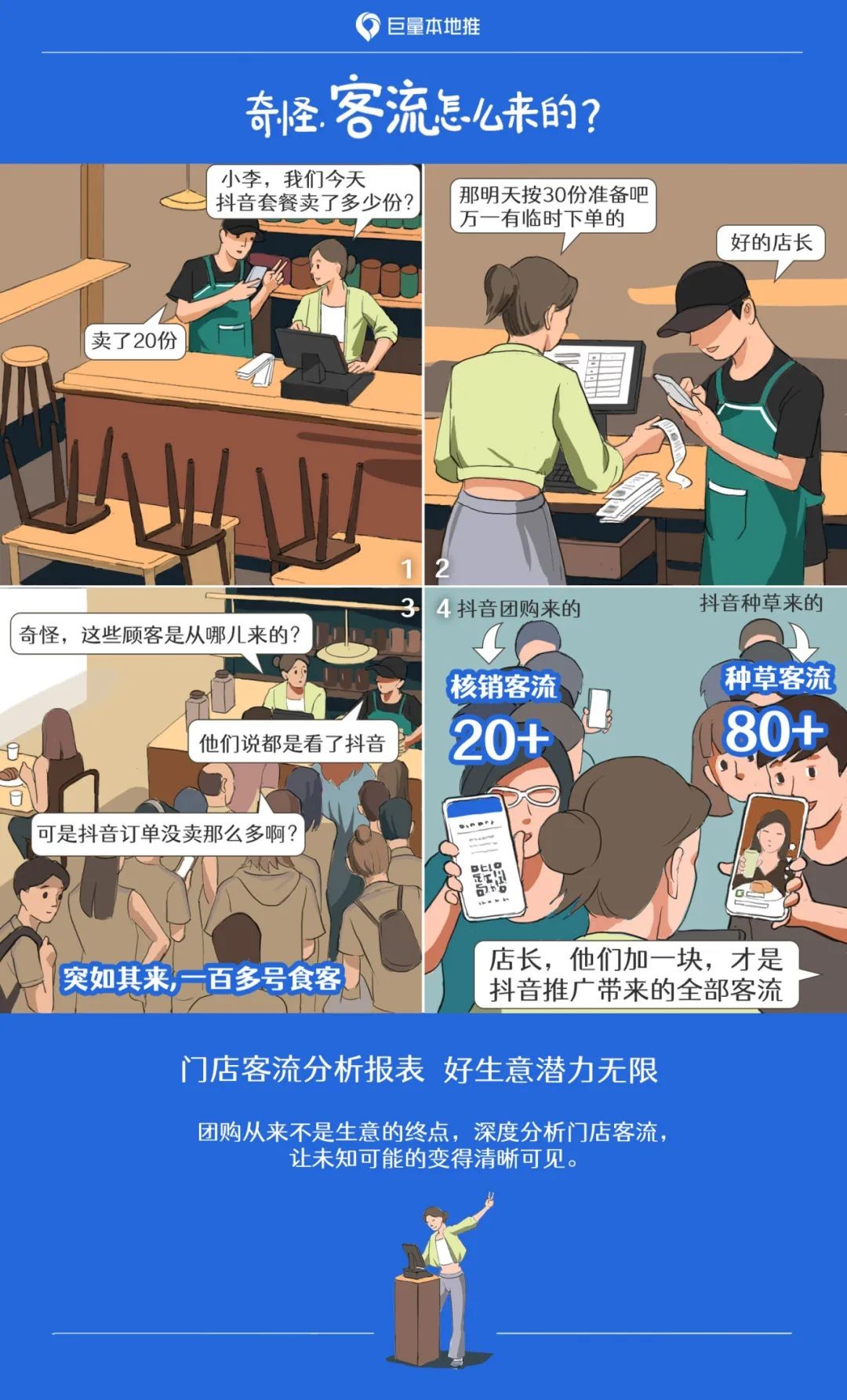 看了這則漫畫你理解門店客流的秘密了嗎?按照團(tuán)購訂單備菜為啥不夠吃?明明客戶都是抖音來的,為啥跟團(tuán)購的數(shù)據(jù)不一致,還多出這么多?