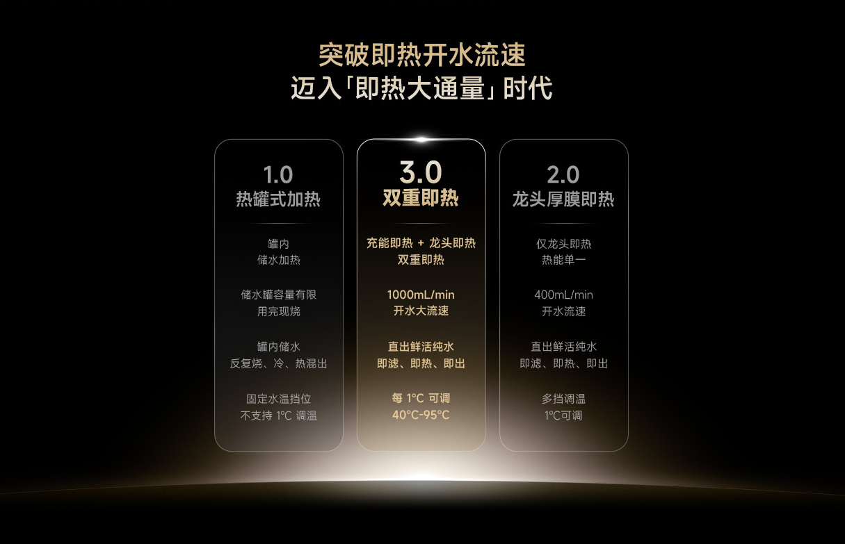 好在如今,一向注重研發(fā)投入的小米品牌又再次以專利級的技術迭代實現(xiàn)了自我革新,即通過創(chuàng)新充能專利技術,引領行業(yè)進入大通量鮮熱水的凈熱3.0時代。