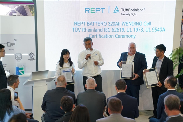 瑞浦蘭鈞問頂320Ah儲能電芯已通過了德國萊茵TüV Rheinland頒發(fā)的UL 1973、UL 9540A、IEC 62619三項國際權(quán)威認(rèn)證,RE+2023上,瑞浦蘭鈞副總裁侯敏、萊茵北美區(qū)電力電子部門經(jīng)理Howard Liu出席了頒證儀式。瑞浦蘭鈞問頂320Ah電池獲三重國際認(rèn)證也標(biāo)志著該電池具備了進(jìn)入歐洲、北美等國際市場的通行證,并將迎來更廣闊的市場機(jī)遇。