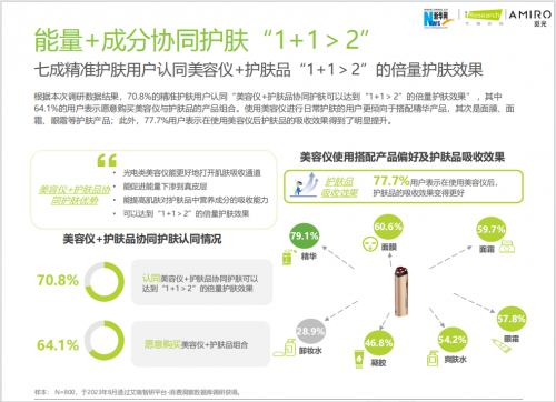 那么面對(duì)越來(lái)越個(gè)性化的護(hù)膚需求,如何為消費(fèi)者提供精準(zhǔn)科學(xué)的護(hù)膚解決方案?作為國(guó)內(nèi)首創(chuàng)“儀器+面膜”護(hù)膚方式的品牌AMIRO覓光,在報(bào)告中為消費(fèi)者揭開(kāi)光電技術(shù)+功效成分,達(dá)到“1+1>2”效果背后的內(nèi)在邏輯。