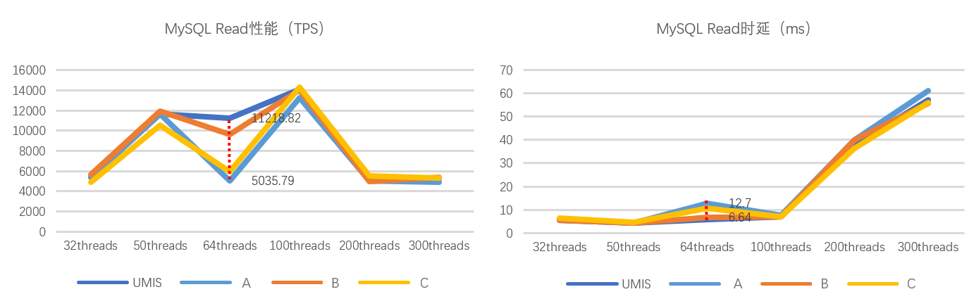 從圖 5 可以看出,憶聯(lián) UH8 系 SSD 性能在 MySQL 混合讀寫場景下,能帶來更高吞吐量的同時(shí)帶來更短的響應(yīng)時(shí)延。對比友商,憶聯(lián) UH8 系 SSD 吞吐量至高可提升 49% 左右,時(shí)延最低可下降 65% ,能充分助力 MySQL 數(shù)據(jù)庫增大數(shù)據(jù)的吞吐量,大幅度降低并發(fā)訪問時(shí)延,解決數(shù)據(jù)庫的高效訪問、方便共享等問題。