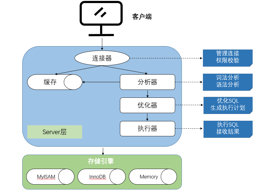 MySQL 是當(dāng)前最流行的關(guān)系型數(shù)據(jù)庫管理系統(tǒng)之一,因其代碼開源,且具備體積小、速度快、較低的TCO等優(yōu)勢,在大、中、小型企業(yè)中皆有應(yīng)用。MySQL 在架構(gòu)上主要分為 Server 層和存儲引擎層。其中 Server 層又分為連接器、緩存、分析器、優(yōu)化器、執(zhí)行器,所有跨存儲引擎的功能都在這層實(shí)現(xiàn);存儲引擎是可插拔式的,常見的存儲引擎有 MyISAM、InnoDB、Memory 等。