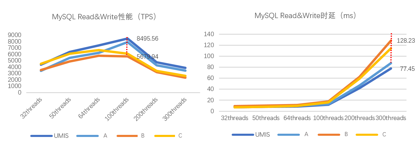圖 5:MySQL 混合讀寫場景下憶聯(lián) SSD 與友商性能對比