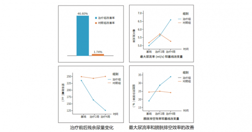 | 治療前后殘余尿量、最大尿流率、膀胱排空效率明顯改善