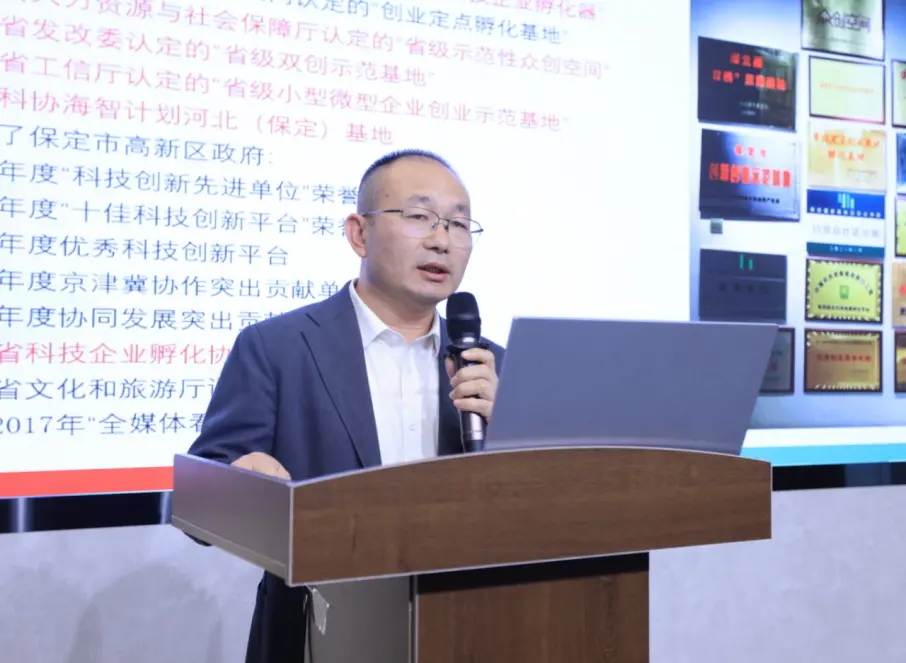 在2023河北省科技企業(yè)孵化協(xié)會(huì)年會(huì)上,石鐵鑄副處長(zhǎng)為大會(huì)致辭,李靖秘書(shū)長(zhǎng)和曾紅兵副秘書(shū)長(zhǎng)分別發(fā)布了“河北省孵化載體發(fā)展報(bào)告”和“河北省雙創(chuàng)地圖”