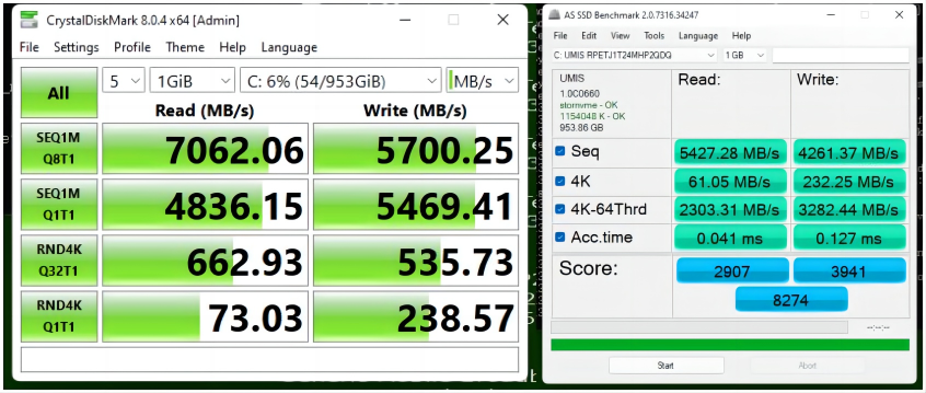 AH660通過采用混合SLC加速區(qū)算法,提供了全生命周期的動態(tài)SLC加速體驗,從而提高SSD的順序讀寫性能。在開箱性能測試方面,當(dāng)測試容量為1G時,CDM的順序?qū)懭胨俣葹?.7 GB/s,超過了官方給出的速度。AS SSD Benchmark上的測試結(jié)果顯示,AH660 的4K隨機(jī)讀寫性可達(dá)61.05 MB/s和232.25 MB/s。從官方數(shù)據(jù)以及測試來看,有理由相信AH660能夠以更快的速度加載應(yīng)用程序、啟動操作系統(tǒng),并實現(xiàn)流暢的數(shù)據(jù)傳輸和游戲加載。無論是進(jìn)行大型文件的傳輸、多媒體編輯還是游戲加載,AH660都能提供出色的性能表現(xiàn),為用戶帶來流暢的體驗。
