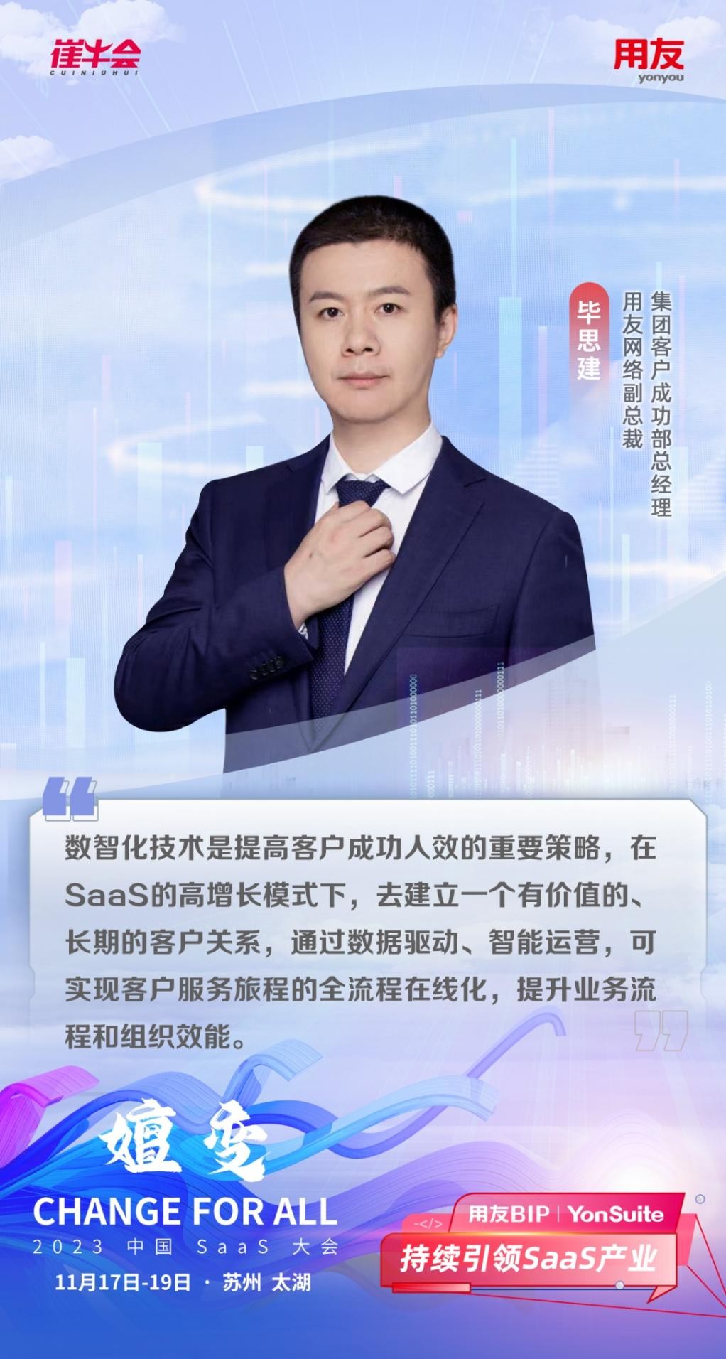 用友網(wǎng)絡(luò)副總裁、集團(tuán)客戶成功部總經(jīng)理畢思建在《精進(jìn)客戶成功,重構(gòu)客戶增長》的分享中,向參會嘉賓展示了如何構(gòu)建高效的客戶成功系統(tǒng)。