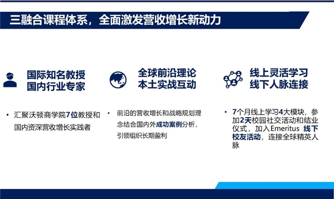 沃頓商學院的《首席營收官》課程為期7個月,內容覆蓋營銷、產品、數據等核心領域,旨在全面激發(fā)營收增長新動力。課程設計核心包括增長戰(zhàn)略、營收和產品管理、驅動戰(zhàn)略創(chuàng)新以及首席官的執(zhí)行力和影響力。
