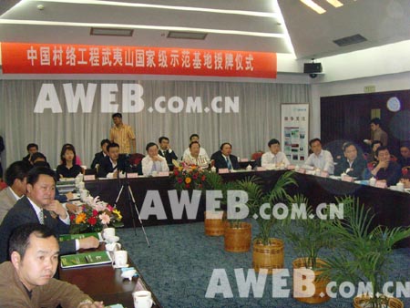 授牌儀式由武夷山市政府常務副市長金益滿主持,武夷山市胡書仁市長致歡迎辭,林嘉騋副會長、曹鴻鳴秘書長分別代表中國扶貧開發(fā)協會、中國致公黨中央致賀詞,“數字武夷”信息化領導小組辦公室劉德水主任就武夷山市新農村信息化建設情況做了題為“政府推動、特色服務、多元參與、商務運營”的專題報告。與會領導及嘉賓還參觀了武夷山游客服務中心以及示范基地示范點--星村村信息服務站,并對中國村絡工程的試點工作提出了很多寶貴的意見和建議。