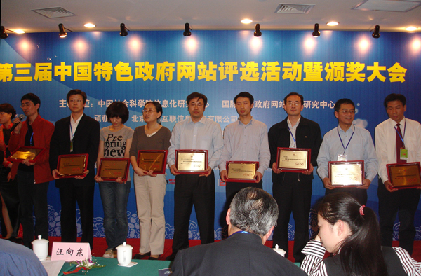 本次評選由由中國社會科學(xué)院信息化研究中心與國脈互聯(lián)政府網(wǎng)站評測研究中心聯(lián)合舉辦,以“建立高績效、服務(wù)型政府網(wǎng)站的實踐樣本”為主題,以“發(fā)現(xiàn)特色、共享經(jīng)驗、強(qiáng)調(diào)網(wǎng)站服務(wù)能力,推動我國政府網(wǎng)站應(yīng)用服務(wù)”為目的,由來自國家信息化專家咨詢委員會、中國社科院信息化研究中心、中國信息協(xié)會、國務(wù)院發(fā)展研究中心、國家行政學(xué)院等單位的國內(nèi)眾多電子政務(wù)專家共同參與。根據(jù)各政府門戶網(wǎng)站的特色及優(yōu)勢,大會分別評出“特色提名獎”、“用戶滿意獎”、“用戶體驗獎”、“服務(wù)創(chuàng)新獎”、“品牌欄目獎”、“綜合創(chuàng)新獎”等六個獎項。其中農(nóng)業(yè)部和商務(wù)部獲綜合創(chuàng)新獎,國資委和科技部網(wǎng)站獲用戶體驗獎,民政部與知識產(chǎn)權(quán)局網(wǎng)站獲服務(wù)創(chuàng)新獎,水利部、衛(wèi)生部和海關(guān)總署獲品牌欄目獎。