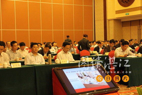 與會(huì)領(lǐng)導(dǎo)在觀看湛江經(jīng)驗(yàn)介紹ppt