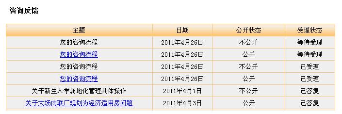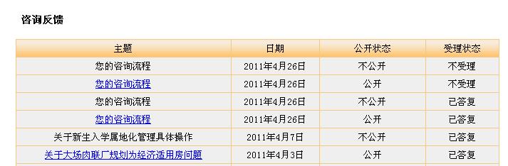 3.網(wǎng)站管理員看到您處于“等待受理”的信息后,會(huì)進(jìn)行閱讀處理。視咨詢的內(nèi)容,一般為當(dāng)天或最長至3個(gè)工作日內(nèi)進(jìn)行答復(fù)。對(duì)于您的咨詢,主要有4種狀態(tài),如下圖。