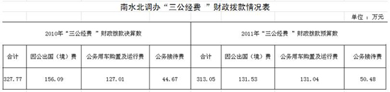 人民網(wǎng)北京7月20日電 國(guó)務(wù)院南水北調(diào)辦19日在其官方網(wǎng)站上公布了“三公經(jīng)費(fèi)”財(cái)政撥款情況及說明,全文如下: