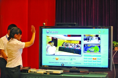 一臺電話機(jī)接在電視上,撥號后電視上是等待模式,那邊的電視上出現(xiàn)“接聽”和“拒絕”字樣,這邊按下免提鍵后,電話接通,通過兩臺電視上攝像儀器,各自顯示出對方的畫面。這就是云媒體電視的可視電話功能,每臺電視分配了一個(gè)唯一的號碼,稱為電視號,用戶之間可以相互撥打。電話撥號時(shí),電視畫面就自動(dòng)縮小到一個(gè)小窗口繼續(xù)播放。“實(shí)現(xiàn)可視通話,只要在機(jī)頂盒上連接一個(gè)普通電話機(jī)和一個(gè)攝像頭就可以了,目前江蘇有線正在積極組織申請相應(yīng)的牌照,預(yù)計(jì)可視通話業(yè)務(wù)將在今年10月份正式推出。”工作人員還介紹說,屆時(shí)還將把電話筒功能加入到電視遙控器上,更方便用戶。