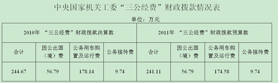 人民網(wǎng)8月1日電 中央國(guó)家機(jī)關(guān)工委的官方網(wǎng)站顯示7月22日公布了“三公經(jīng)費(fèi)”財(cái)政撥款情況。全文如下: