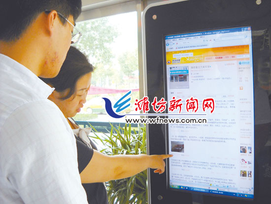 8月17日,上午記者來到奎文區(qū)大虞街道社區(qū)服務(wù)大廳,門口左側(cè)有臺(tái)近兩米高的信息機(jī),走近一看碩大屏幕上顯示的是該街道的微博內(nèi)容,其中最新的一條信息是奎文區(qū)招聘人力資源和社會(huì)保障專管員的招聘簡(jiǎn)章。