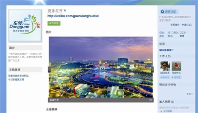 2011年,東莞市政府新聞辦和市公安局率先開通了官方微博“莞香花開”和“平安東莞”。隨后市第一人民法院、市旅游局、市教育局、長安鎮(zhèn)、橫瀝鎮(zhèn)等十多個職能部門和鎮(zhèn)街也相繼開通了官方微博。