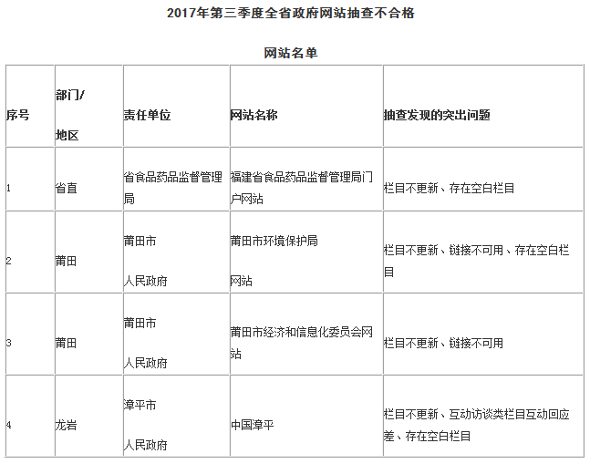 福建省人民政府辦公廳關于2017年第三季度全省政府網(wǎng)站抽查情況的通報