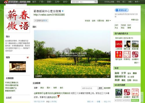 荊楚網(wǎng)消息 5897個粉絲,841條訊息,這里是“蘄春微語”,蘄春縣縣委宣傳部官方微博。從2011年6月至今,蘄春不僅有了宣傳部官方微博,在蘄春政務微群里,已經(jīng)有20個部門(企事業(yè)單位)的官方微博加入。“宣傳部以文件形式,電話督辦,讓縣里各個部門單位都建立自己的微博,以適應網(wǎng)絡新時代的要求。”蘄春縣委宣傳部外宣辦副主任李威表示,“用營銷的方式做好宣傳,用鮮活的手法來推動工作。”