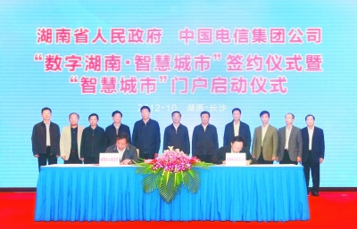 10月22日下午,湖南省政府與中國電信集團公司在長沙簽署《共同建設“數字湖南·智慧城市”信息化戰(zhàn)略合作框架協(xié)議》。省委書記、省人大常委會主任周強見證簽約并宣布“數字湖南·智慧城市”門戶啟動;省委副書記、省長徐守盛,中國電信集團公司黨組書記、董事長王曉初在儀式上致辭。