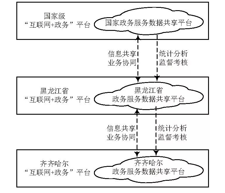 根據(jù)《黑龍江省加快推進(jìn)“互聯(lián)網(wǎng)+政務(wù)服務(wù)”工作方案的通知》, 目前黑龍江省計(jì)劃采用分建模式。分建模式是指國(guó)家級(jí)、省級(jí)、市級(jí)的“互聯(lián)網(wǎng)+政務(wù)”平臺(tái)分別建設(shè), 在這種模式下, “互聯(lián)網(wǎng)+政務(wù)”的前臺(tái)和后臺(tái)均獨(dú)立建設(shè)。同時(shí), 盡管用戶在國(guó)家級(jí)、省級(jí)、市級(jí)“互聯(lián)網(wǎng)+政務(wù)”平臺(tái)均可以注冊(cè)賬號(hào), 但通過(guò)政務(wù)服務(wù)數(shù)據(jù)共享平臺(tái)的身份互認(rèn)機(jī)制, 也依舊可以實(shí)現(xiàn)省內(nèi)、省外政務(wù)服務(wù)“一網(wǎng)申請(qǐng)、一號(hào)通行”的辦理機(jī)制。分建模式的優(yōu)點(diǎn)是可以最大程度地考慮各地區(qū)的實(shí)際情況, 因地制宜地設(shè)置政務(wù)服務(wù)項(xiàng)目而不被統(tǒng)一模式所禁錮。缺點(diǎn)是無(wú)法避免部分功能的重復(fù)性建設(shè), 也可能會(huì)由于各地區(qū)政府建設(shè)能力和資金的不同導(dǎo)致同級(jí)平臺(tái)質(zhì)量和水平參差不齊。