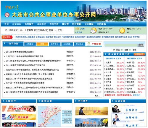 大連市公共企事業(yè)單位辦事公開網(wǎng)網(wǎng)站首頁局部圖